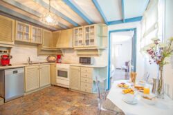 You’ll love the inviting living spaces, fully equipped kitchen, and charming dining areas. But what makes this villa truly special is the outdoor area — a private pool, sun loungers, a marble courtyard table, hammock, shaded lounge, and lush Mediterranean gardens.