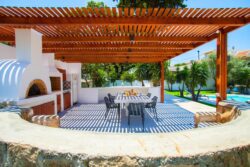Authentic Greek architecture pairs beautifully with modern amenities in this stunning luxury villa rental in Ixia, Rhodes.