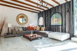 The villa sits on a private 2,200 m² plot and features spacious interiors of 250 m², accommodating up to 10 guests. It offers 5 beautifully designed bedrooms and 6 bathrooms, along with indoor and outdoor living areas crafted for relaxation and memorable moments.